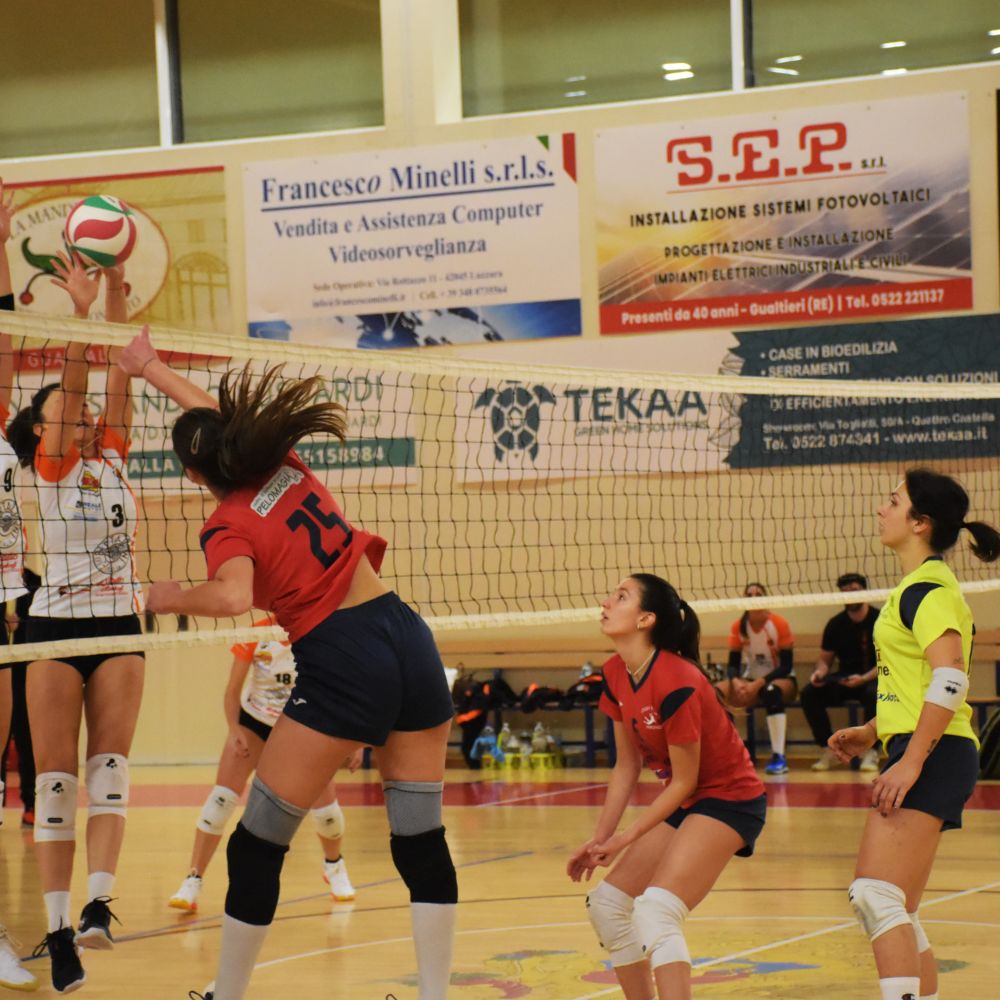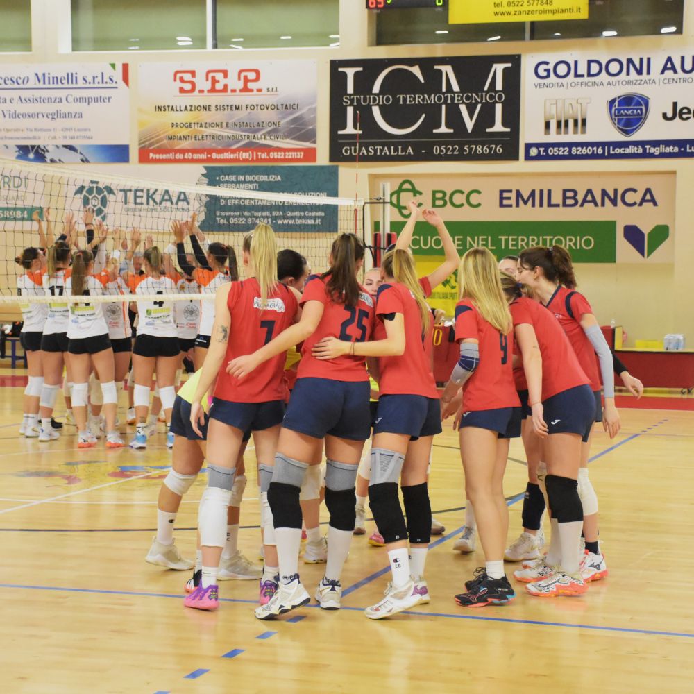 Sestetto inedito quindi con Bongiorni sulla diagonale principale con Tagliaferri, Ruggeri e Bertolamei al centro, Subona e Zucchi di banda e Cricchini libero. La partita si mette subito in salita e le rimaneggiate rossoblù non riescono proprio a trovare contromisure per arginare le forti attaccanti reggiane. Guastalla prende un ampio margine di sicurezza e lo mantiene fino a fine set. Anche l'inizio del secondo parziale è totalmente di marca casalinga e Cremonesi a metà prova a cambiare l'assetto della squadra. Qualche segnale positivo arriva già nel finale del set portato comunque ancora facilmente a casa dalle reggiane. Nel terzo arrivano finalmente le cose migliori delle ospiti che per la prima volta nel match tengono il passo e finiscono per cedere solo nella fase conclusiva con il minimo svantaggio. Partita certamente complicata ed avversario forte ed in grande fiducia, ma in campo rossoblù, nelle difficoltà, ha spiccato solo la troppa arrendevolezza.