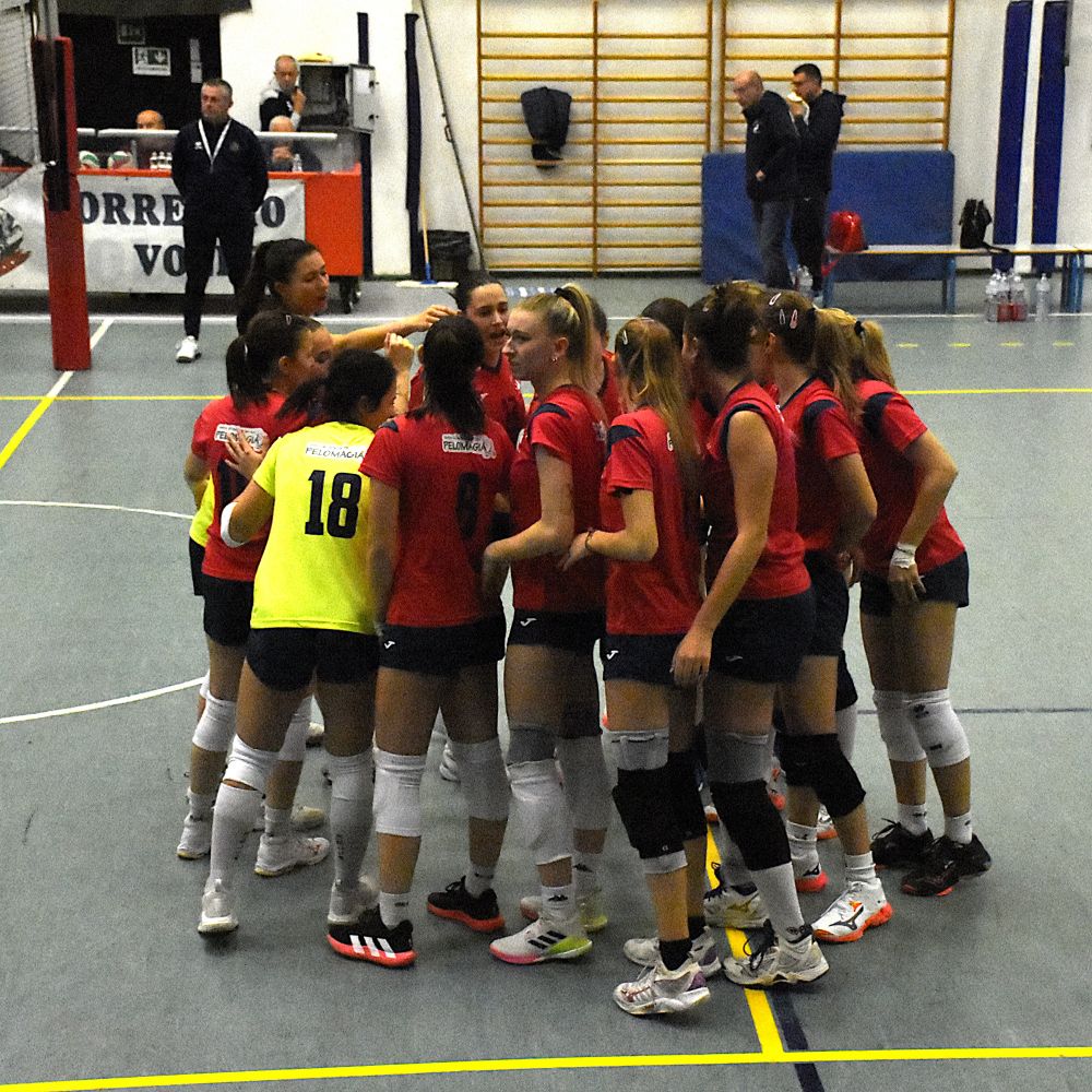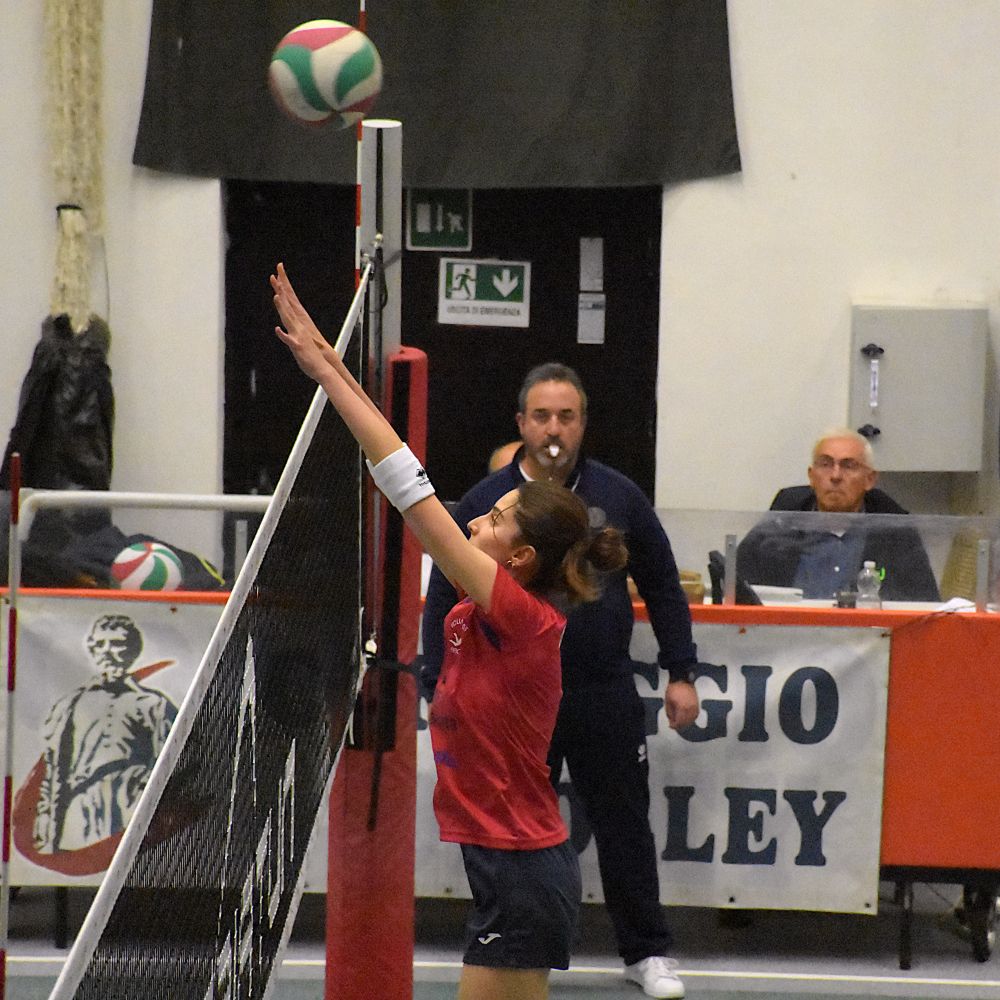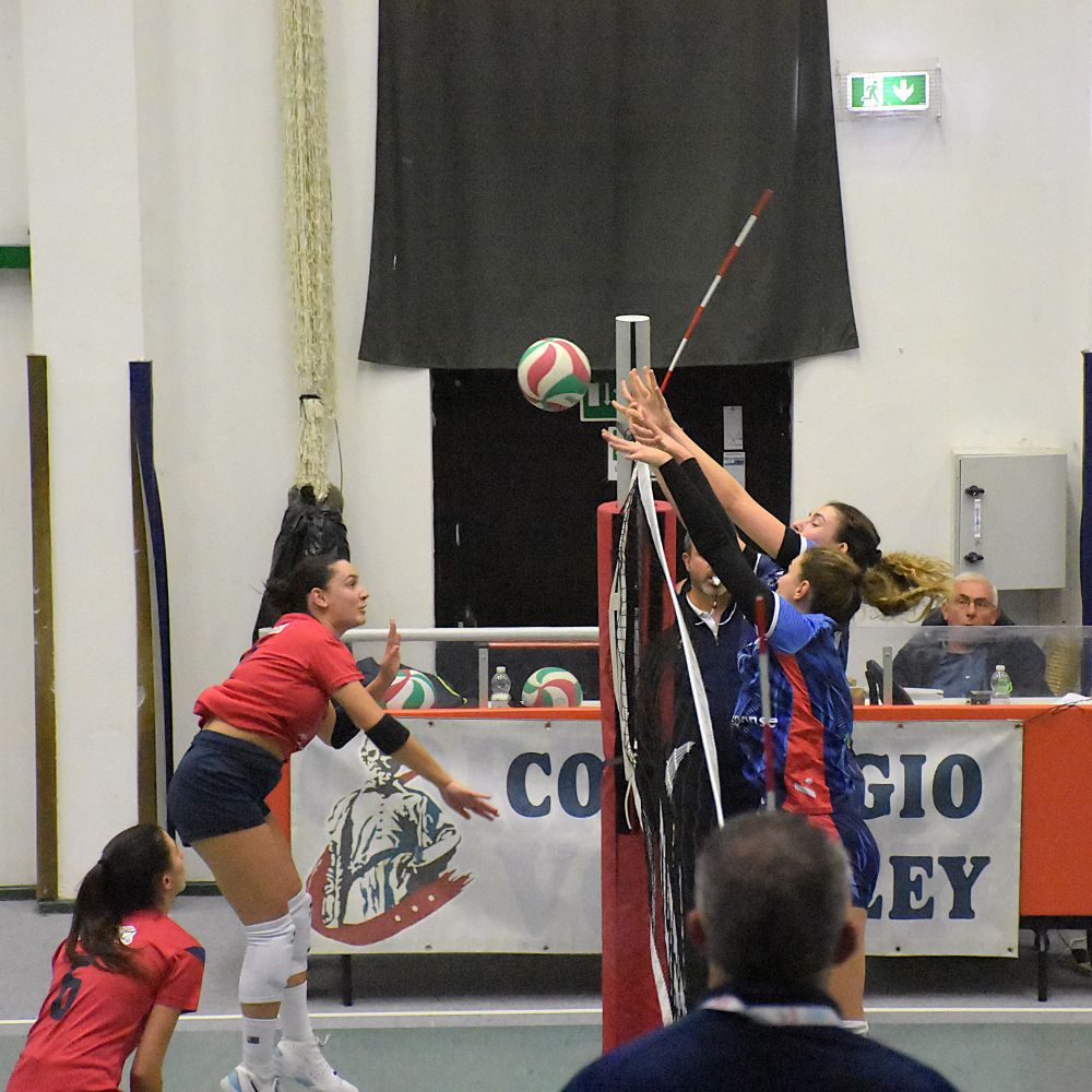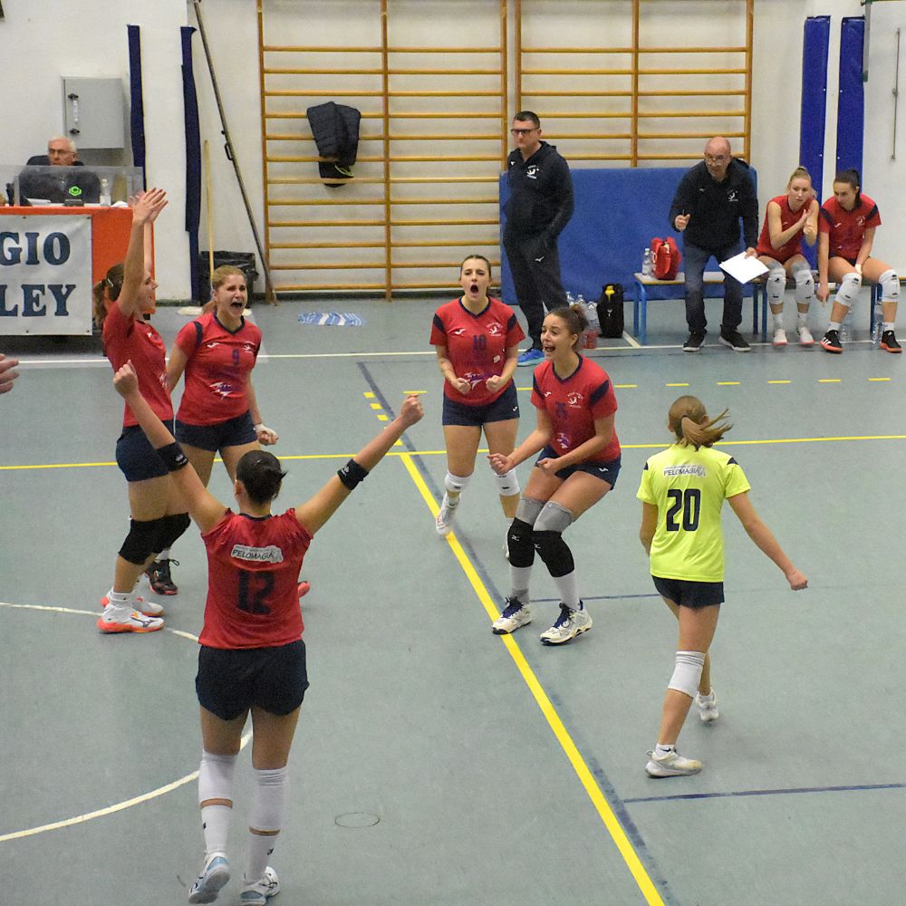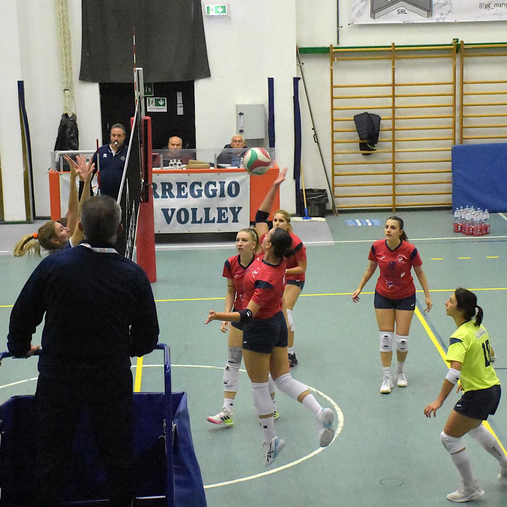 Partenza in equilibrio fino al primo break delle ospiti che scappano sul 14-10 e riescono a mantenere il vantaggio di quattro punti sino alla fine del set, in relativa tranquillità. Inizio di secondo set punto a punto. Mini break di Correggio e primo time out di Cremonesi sotto 10-14. Le rossoblù ricuciono subito sul 15 pari e sorpassano arrivando a condurre 23-20 nel finale. Il doppio vantaggio sembra cosa fatta, ma le reggiane sono brave ad approfittare di quattro errori consecutivi delle rossoblù arrivati purtroppo nel momento decisivo del set. Conti pareggiati con qualche rammarico per capitan Tagliaferri e compagne e terzo set che parte in estremo equilibrio. Il cambio palla è sistematico fino al 20 pari, ma l'allungo decisivo arriva dalle piacentine che chiudono vittoriose col minimo scarto e si riportano in vantaggio di set. Nel quarto partono meglio le padrone di casa e prendono subito qualche punto di vantaggio che mantengono per tutto il set senza che le ospiti riescano mai a raggiungerle. Cremonesi fa rifiatare alcune pedine nel finale di set e riparte nel quinto con Rossetti al centro e la giovanissima Spotti libero che ha sostituito Cricchini, fuori per crampi già a metà del set precedente. Scappano via subito le ragazze di Cremonesi e vanno al cambio di campo avanti 8-4. Subona entra per gli ultimi turni di servizio e dà il contributo nei punti finali del tiebreak. Le ospiti chiudono i giochi e si prendono i due punti in palio.