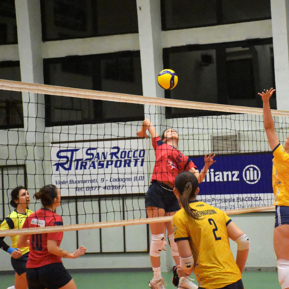 Dopo il primo set sempre condotto dalle modenesi già dalle prime battute del secondo arriva la reazione delle padrone di casa che giocano punto a punto per poi operare il primo vero break portandosi avanti 14-11. Aggancio delle modenesi sul 18 pari e di nuovo punto a punto. Si arriva ai vantaggi. Il primo set point è del Team che non chiude, il secondo va alle ospiti che lo sprecano a loro volta, ma chiudono poi favore il set grazie ad un servizio ed una ricezione sbagliata delle piacentine.