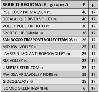 SAN ROCCO TRASPORTI TEAM 03: Marchini 3, Seist 15, Pommella S.15, Drazetic 2, Androni, Puddu 3, Pommella G.3, Boselli 4, De Luca 9, Lavezzi 23, Ferrarini 2, Spotti (L). All. Falcione, 2° all. Palmieri