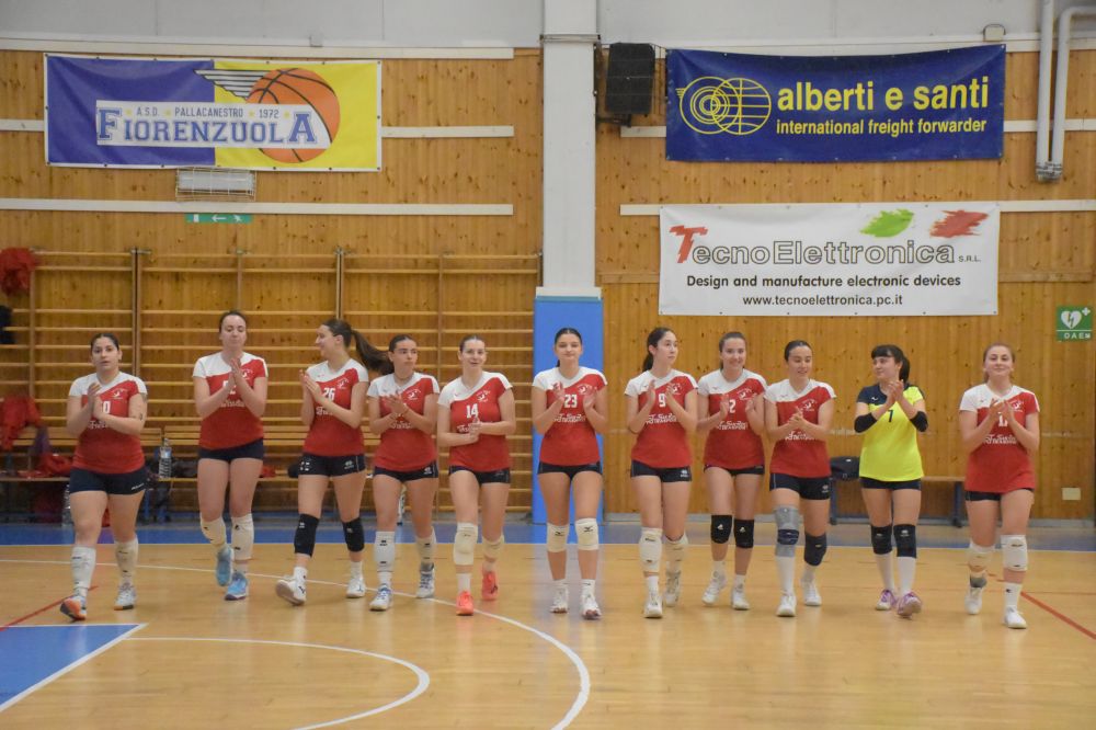 La partita sembra mettersi subito male per Fiorenzuola che non riesce a tenere il ritmo delle ospiti che vanno a vincere piuttosto facilmente il primo parziale. Ma le esperte padrone di casa non intendono abdicare tanto facilmente, crescono in tutti i fondamentali e si giocano punto a punto tutto il set. Sul 22 pari trovano il guizzo finale che le riporta in corsa. Inizio del terzo ancora punto a punto, ma a metà set arriva per primo il break delle fiorenzuolane, che di fatto indirizza definitivamente la partita. Non arriva la reazione delle ragazze di Falcione che prova alcuni cambi senza vedere i frutti sperati. Estremamente fallose in tutti i fondamentali e troppo arrendevoli le piacentine perdono malamente anche il terzo set. Ancora peggio l'inizio del quarto. Sotto subito 7-0 e partita praticamente chiusa a favore delle padrone di casa.